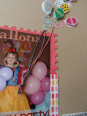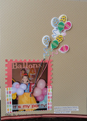 Qué monada de página, con esos globos que salen del brazo de la niña! muy buena idea!